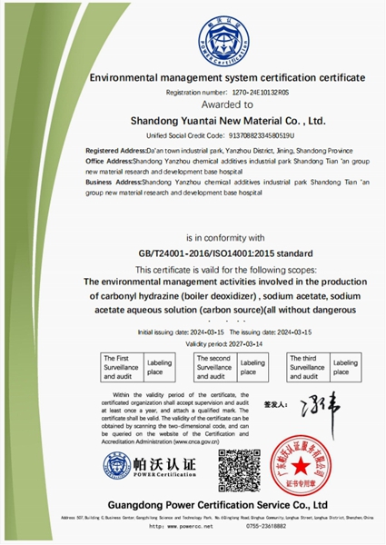 环境管理体系认证证书