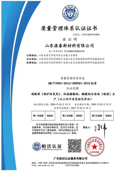 质量管理体系认证证书