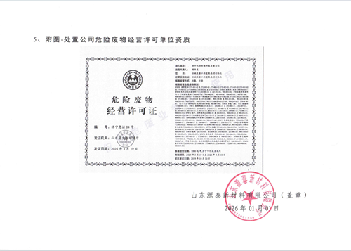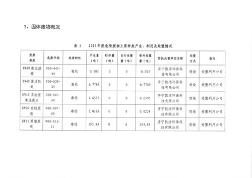 山东源泰新材料有限公司2025年度固体废物污染环境防治信息公开